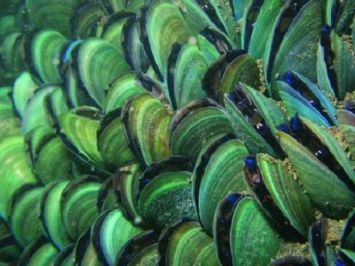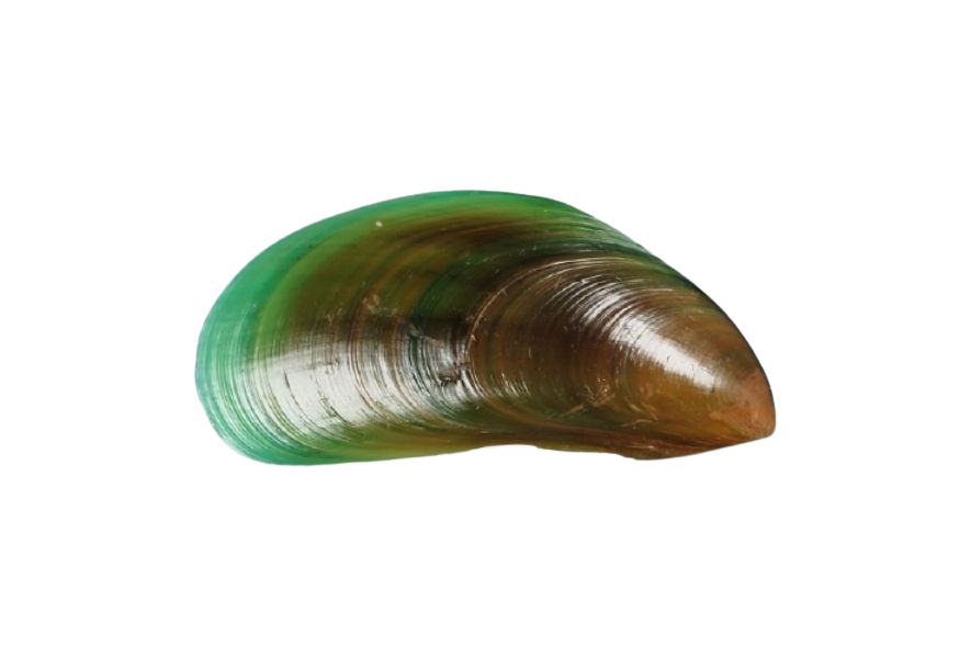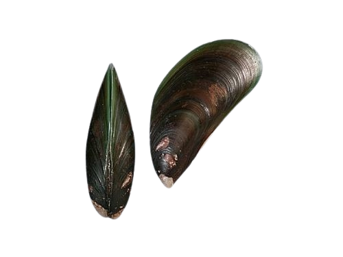 Molto particolare è la colorazione di tale tipologie di cozze: nei soggetti giovani sono caratterizzati da un verde brillante, che diventa sempre più scuro (tendente al marrone) man mano che l’età avanza. La colorazione interna è madreperlacea con il margine verde brillante.
