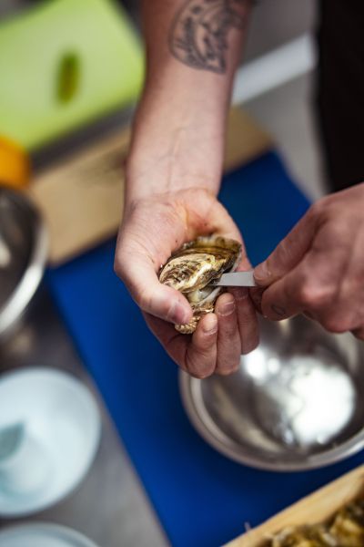 2. Open the oysters (you’ll find detailed instructions in our oyster-opening guide);