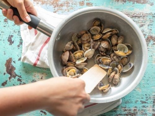 The most important rule is to keep clams alive: clams won’t open during cooking if they’re not fresh, so it’s essential to preserve their vitality.