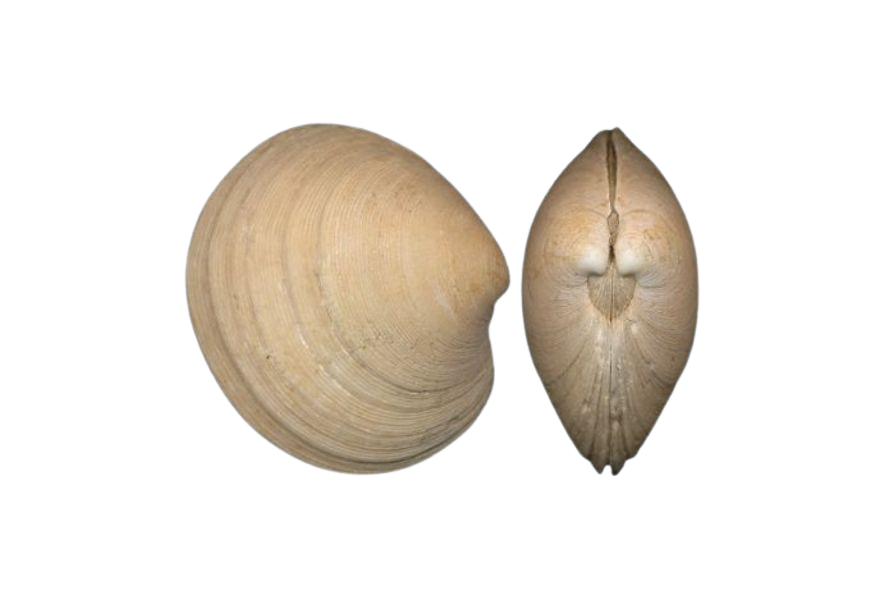 • il margine liscio e un legamento profondamente inserito, che si estende per due terzi della conchiglia;