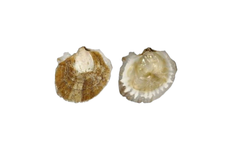 • la valva destra (quella superiore) ha una forma più o meno piatta, presenta quasi sempre delle leggere frastagliature (legate spesso all’esposizione continua alle maree) di materiale corneo (conchiolina);