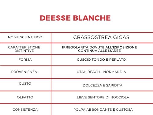 La Deesse Blanche, o la Dea Bianca, è una tra le migliori ostriche, provenienti dalla spiaggia di Utah Beach.